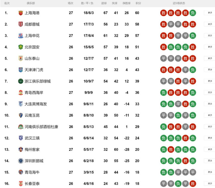 17日晚,海港和成都蓉城也都结束了本轮比赛,两队都赢得了最终的胜利。所以,战胜青岛西海岸后,申花还是排名积分榜第3,落后领头羊海港3分。