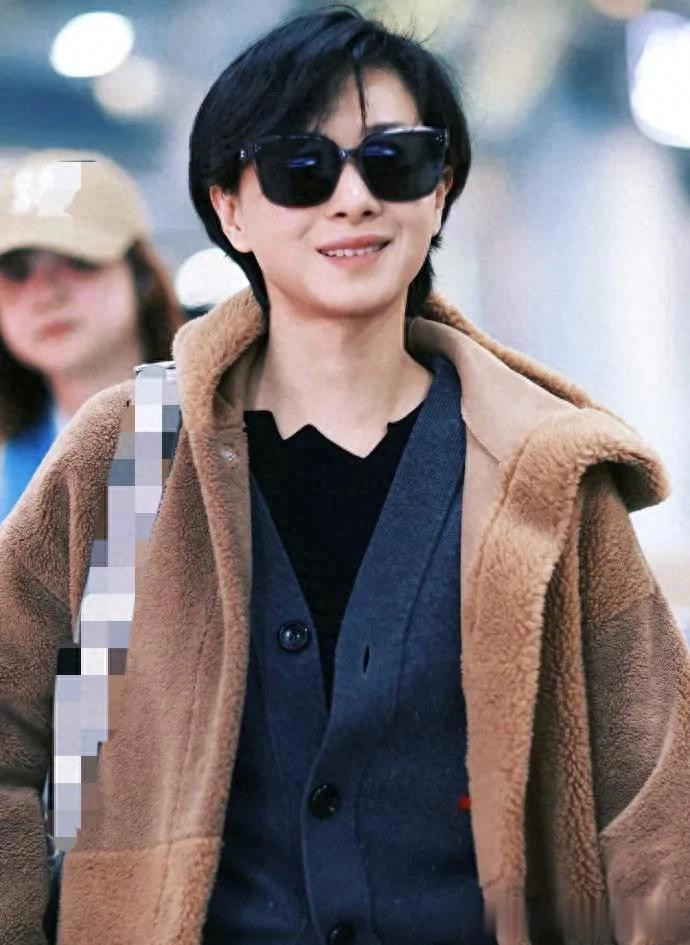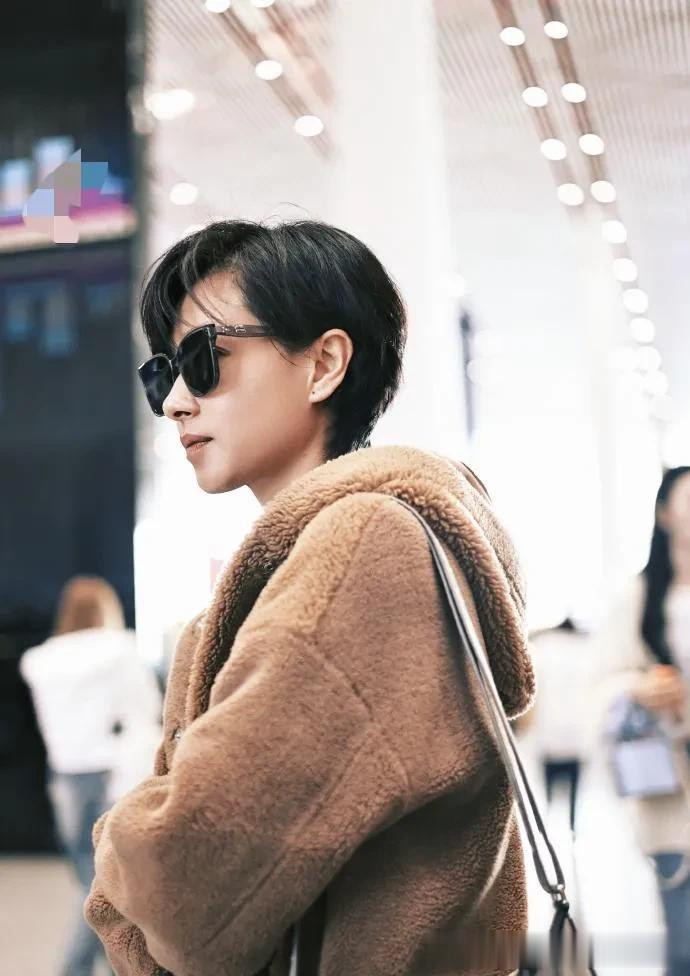 万茜机场私服真时髦! 穿棕色羊羔毛外套+牛仔裤, 洋气又高级!